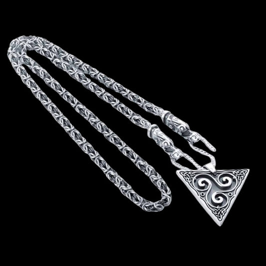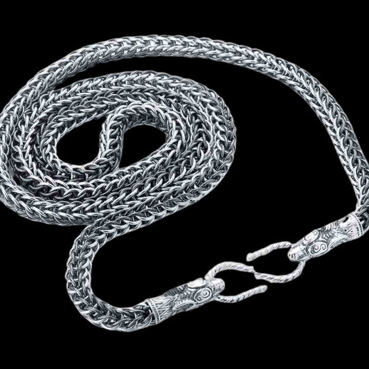 Cadena vikinga cuadrada hecha a mano con puntas de lobo joyería nórdica de plata de ley