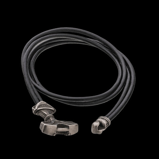 Pulsera de cuero vikingo hecha a mano con martillo de Thor