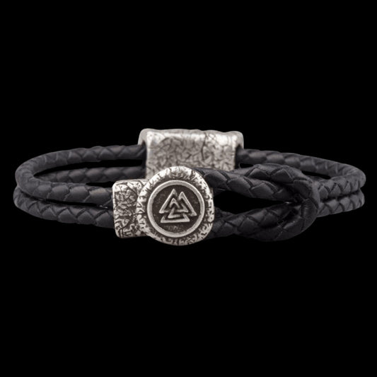 Pulsera de cuero con cierre Valknut hecha a mano plateada