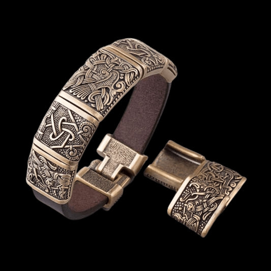 Pulsera de cuero con cierre Valknut hecha a mano Bronce