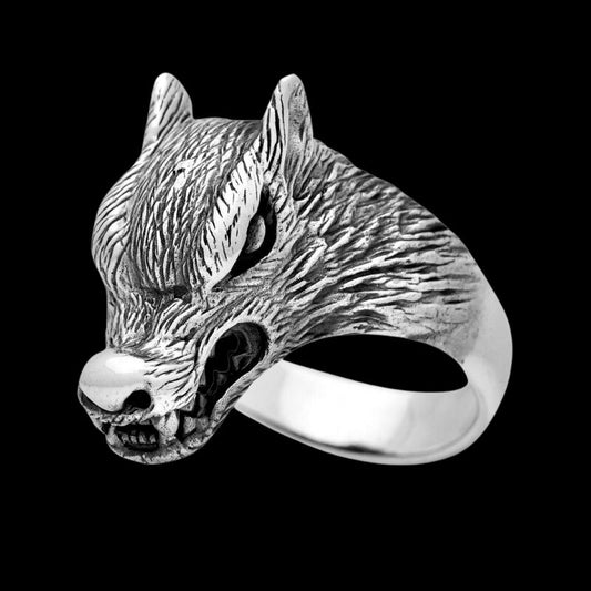 Anillo de plata de ley con cabeza de lobo