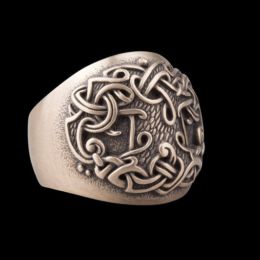 Anillo de bronce estilo Mammen con símbolo de Yggdrasil hecho a mano