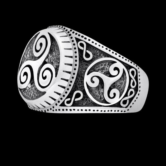 Anillo Artesanal Pagano Celta Triskelion Vikingo de Plata de Ley 952