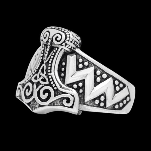 Anillo Biker de Martillo de Thor Mjölnir con Nudo Celta en Plata de Ley 925