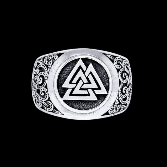 Anillo escandinavo nórdico estilo Valknut Mammen de plata de ley 925