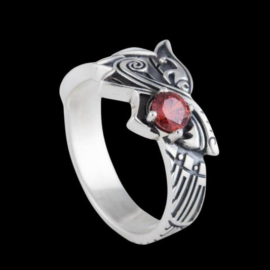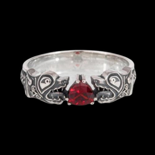 Anillo de plata de ley con gema roja Fenrir de lobo nórdico hecho a mano