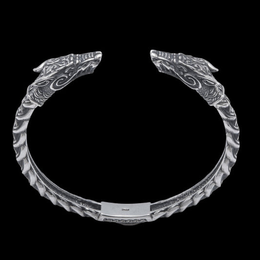 Brazalete de adorno fino hecho a mano Fenrir plata esterlina