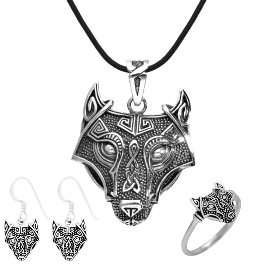 Caja Regalo Lobos Con Colgante Triquetra Y Pendientes
