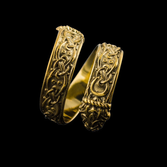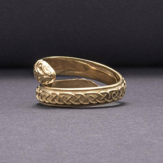 Anillo de oro pagano con adorno de Jormungand hecho a mano