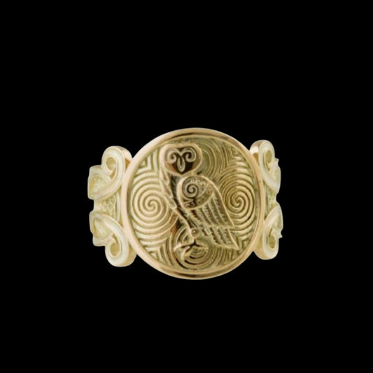 Símbolo de Búho Artesanal con Anillo de Oro Adorno