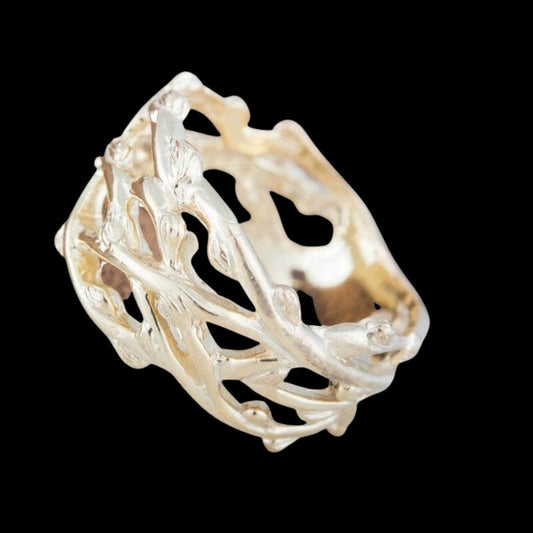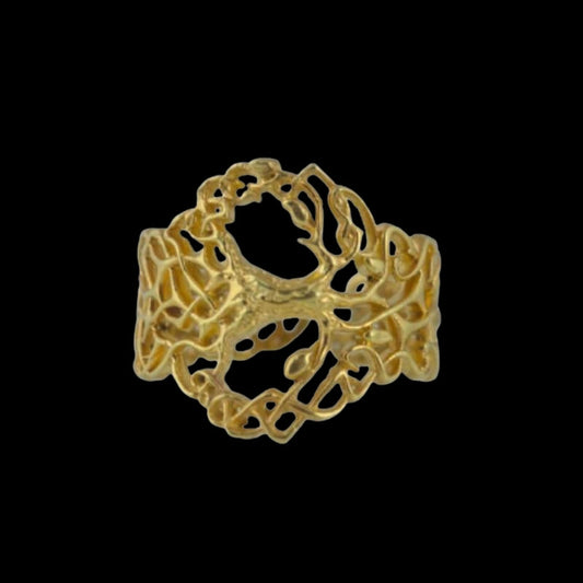 Anillo de oro con adorno de Yggdrasil hecho a mano