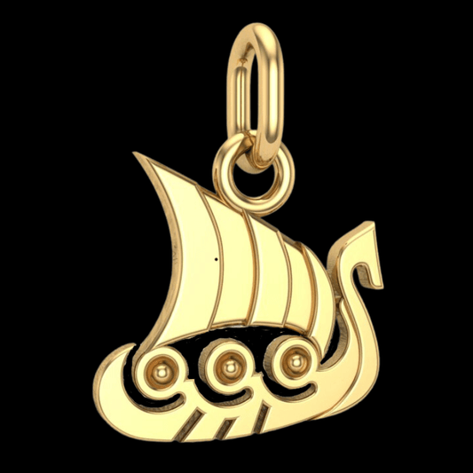 Colgante de oro de barco vikingo delgado "Drakkar" hecho a mano