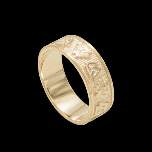Anillo de oro de banda nórdica Valknut hecho a mano