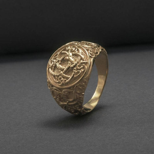 Anillo de oro con adorno de urnas de Sleipnir hecho a mano