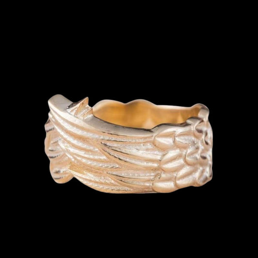 Anillo de oro nórdico con plumas de cuervo hecho a mano