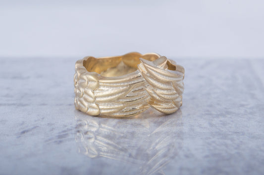 Anillo de oro nórdico con plumas de cuervo hecho a mano