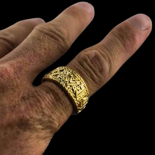 Anillo de oro hecho a mano con runas Elder Futhark