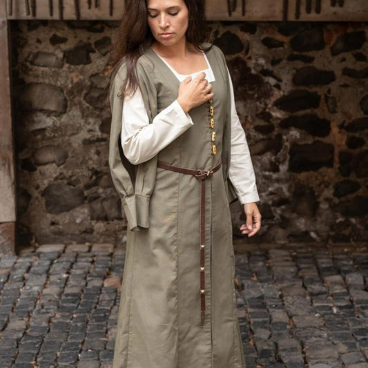 Cada pieza de nuestra colección es el resultado de una artesanía dedicada, que reproduce los métodos y materiales de la época medieval. Desde las resistentes túnicas de lana de los campesinos hasta los elegantes vestidos de lino de la nobleza, cada artículo es una pieza de la historia que se puede vestir. Nuestra colección no es sólo ropa; es un puente hacia el pasado, una invitación a sumergirse en la vida y la época de la sociedad medieval.