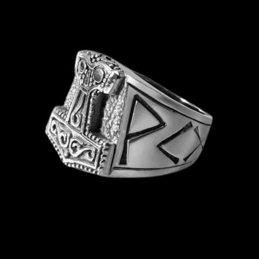 Anillo Biker de Martillo de Thor Mjölnir con Nudo Celta en Plata de Ley 925