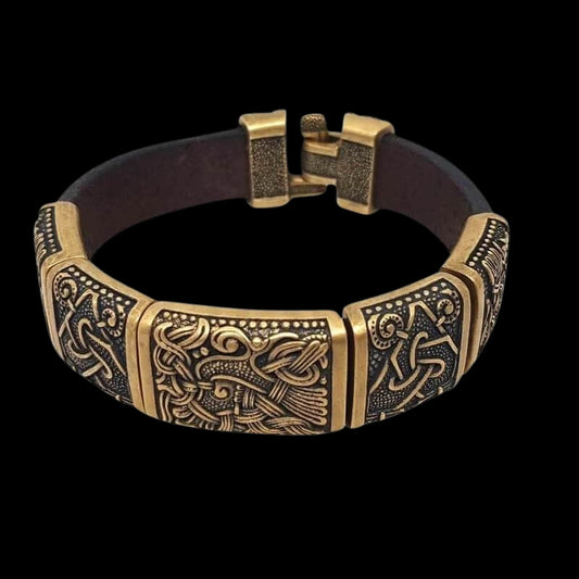 Pulsera de cuero con cuentas de bronce Hail Odin hecha a mano