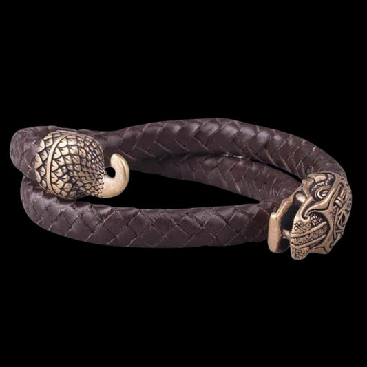 Pulsera de cuero con cierre de yelmo de asombro hecha a mano, bronce