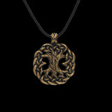Colgante de bronce de runa de lobo Yggdrasil hecho a mano