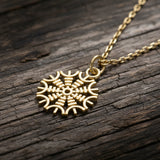El colgante de oro Slim Helm of Awe es una pieza sofisticada que encarna el poderoso simbolismo del antiguo Yelmo de Awe nórdico. Se creía que este símbolo, conocido por sus cualidades protectoras, confería fuerza y coraje a los guerreros en la batalla.