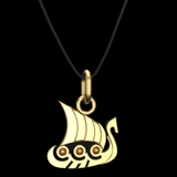 Colgante de oro de barco vikingo delgado "Drakkar" hecho a mano