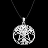 Colgante Wiccan con pentagrama y pentáculo de árbol de la vida recortado en plata de ley 925
