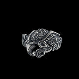 Adornado con diseños de animales geométricos vikingos clásicos, este anillo captura la esencia de los cuervos de Odín, Huginn (pensamiento) y Muninn (memoria), que atraviesan el cosmos para traerle noticias del mundo. Su presencia en este anillo simboliza la conexión del usuario con la sabiduría y la búsqueda del conocimiento, un guiño al vasto dominio intelectual de Odín.
