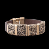 Cada símbolo está cuidadosamente grabado en discos chapados en bronce o plata, sobre un fondo de cuero italiano de primera calidad, creando una pieza llamativa que resuena con el poder duradero de los dioses nórdicos. Use esta pulsera como tributo al legado perdurable de los vikingos y a los símbolos antiguos que continúan inspirando fuerza y guía.