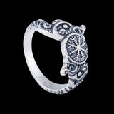 Anillo de plata de ley con símbolo de yelmo de asombro y adorno de lobo hecho a mano