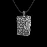 Adornando este collar, con su intrincada obra de arte de la Estela de Mammen, te conectas con el antiguo mundo nórdico, inspirándote en sus poderosos símbolos e historias. Es una pieza de declaración que realza la individualidad y el estilo, ya sea llevada con la cuerda de cuero proporcionada o con una fina cadena de plata de ley.
