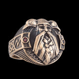 Anillo de bronce de circonio de Odín y Cuervo hecho a mano