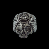 Anillo de plata de ley chapado en rutenio hecho a mano con calavera de Odín Valknut