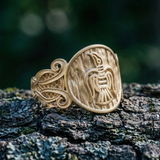 Anillo de oro nórdico con adorno de cuervo hecho a mano
