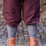 Confeccionados en 100 % algodón, estos pantalones ofrecen transpirabilidad y están diseñados para complementar otras prendas de nuestra colección, como leggings y camisas, realzando tanto la precisión histórica como la practicidad moderna. Disponibles en varios colores, cada par está teñido a mano, añadiendo un toque único a cada prenda.