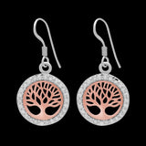 Pendientes de plata de ley con Yggdrasil vikingo de oro rosa y circonitas cúbicas