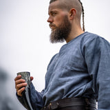 La túnica vikinga "Torsten" en color azul-gris está diseñada para quienes buscan un estilo vikingo auténtico y resistente. Inspirada en prendas históricas de la Alta Edad Media, esta túnica refleja la ropa sencilla pero funcional que usaban tanto los guerreros vikingos como los colonos.