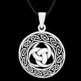 Este colgante es un tributo a la incesante sed de sabiduría de Odín. El intrincado trabajo de nudos que enmarca el triskelion evoca la maestría del arte vikingo, recordándonos que el conocimiento es tanto un arma como una espada.