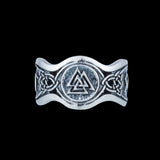 El Valknut, un emblema sagrado ligado a la gloria del Valhalla, simboliza el máximo honor otorgado a un guerrero vikingo: una muerte valiente en batalla. Este anillo de plata esterlina es un tributo a ese espíritu indomable, la seguridad de un lugar en el salón de Odín y la batalla final de Ragnarok.
