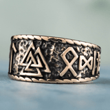 El Valknut es el símbolo de Valhalla, y por lo tanto también es el símbolo de esta filosofía vikinga de vivir y morir valientemente. Este anillo llamativo pero sutil combina el símbolo Valknut con las runas de "Salve Odin", el grito que todos los guerreros vikingos hacían antes de entrar en batalla. Esta es la pieza perfecta para los vikingos modernos que creen en vivir con valentía.