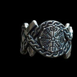 Anillo de plata de ley con adorno nórdico Vegvisir hecho a mano
