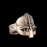 Anillo de bronce con casco vikingo hecho a mano