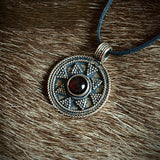 Hecho a mano por expertos artesanos, este colgante encarna la rica herencia de vikingos y eslavos y presenta una piedra granate natural en el centro. Llevar este colgante te conecta con las poderosas tradiciones y el arte del pasado, reflejando belleza y fuerza.