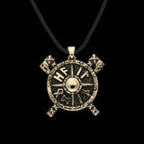 Colgante de bronce hecho a mano con hachas y runas de escudo vikingo