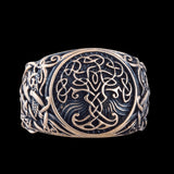 Anillo de bronce estilo Mammen con símbolo de Yggdrasil hecho a mano