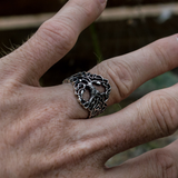 Este anillo de plata esterlina captura la majestuosa esencia de Yggdrasil, y su diseño refleja el amplio alcance del árbol en todo el mundo. Los intrincados detalles invitan a reflexionar sobre el papel del árbol a la hora de mantener el equilibrio, nutrir la vida y encarnar el destino, según lo determinado por las Nornas en su base.